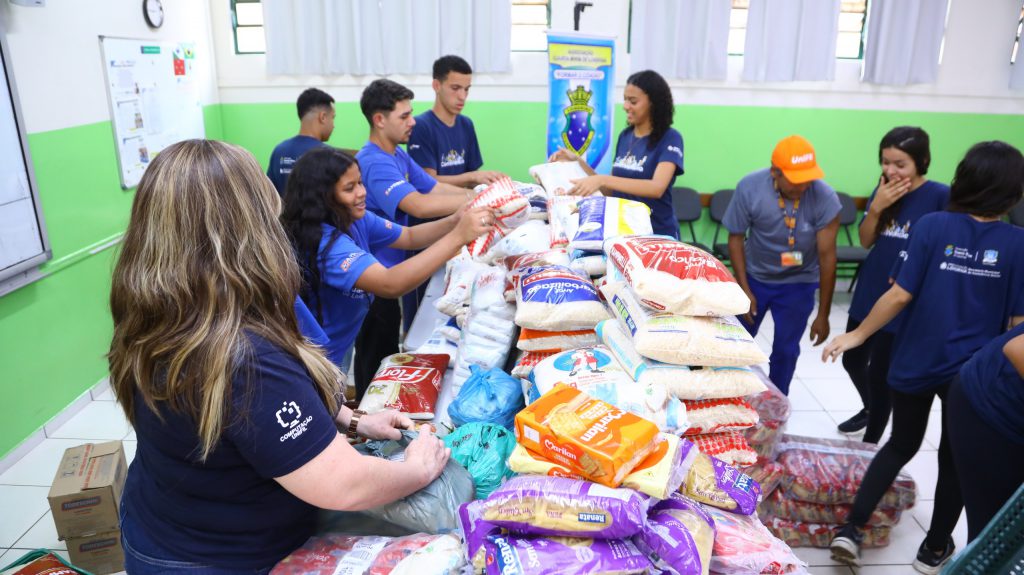 Mais de uma tonelada de alimentos! É o resultado da ação solidária dos alunos de Computação da UniFil, que se mobilizaram na campanha de doação durante a 19ª Semana Tecnológica e alcançaram essa expressiva quantidade. Os 1.076 quilos vão contribuir na alimentação de crianças e adolescentes atendidos pela Guarda Mirim de Londrina, entidade que há 60 anos trabalha na formação cidadã e educação profissional.