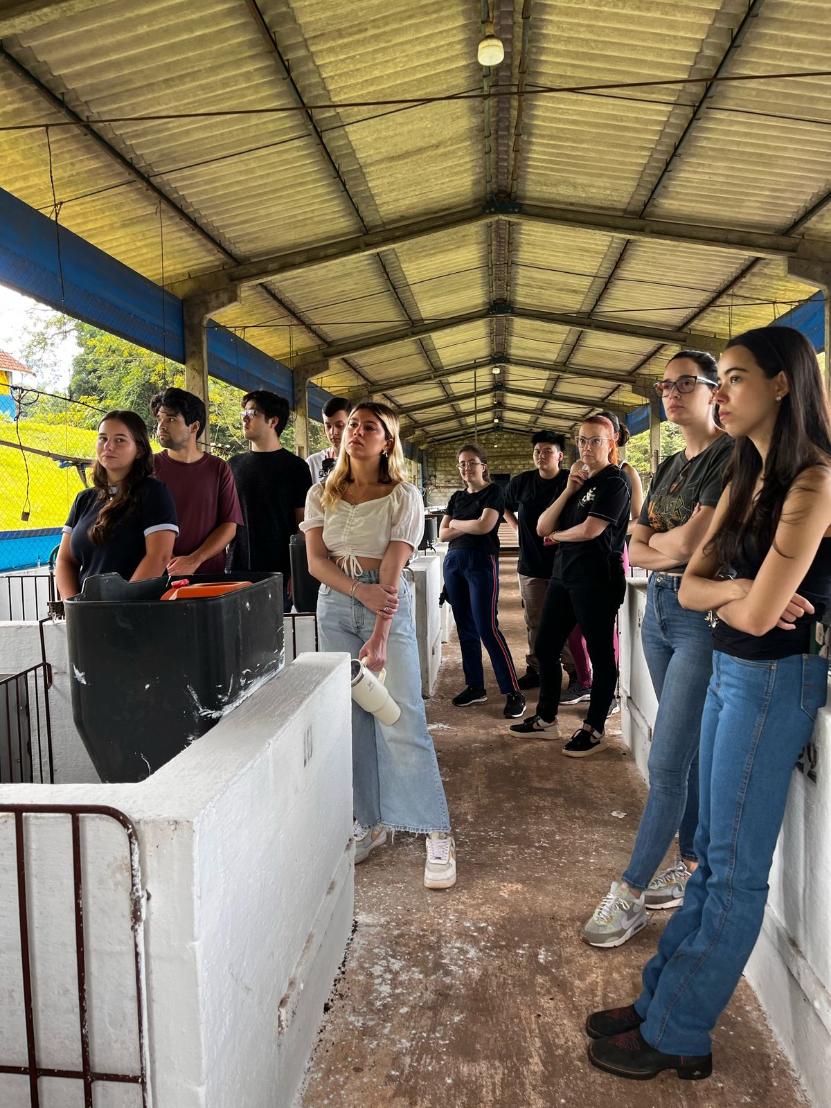 Uma aula prática para conhecer de perto todo o ciclo de produção da suinocultura: desde o nascimento, cria e recria, técnicas de reprodução, manejo, alimentação, engorda, terminação para abate e colocação de carne e derivados no mercado. Foi a atividade desta manhã de alunos do 4o ano de Medicina Veterinária da UniFil, que participaram de visita técnica à fazenda escola da Universidade Estadual de Londrina.
