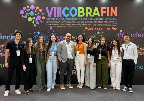 Grupo de alunos de Fisioterapia da UniFil no VIII Congresso Nacional de Fisioterapia Neurofuncional (COBRAFIN), no Centro de Convenções Frei Caneca, em São Paulo