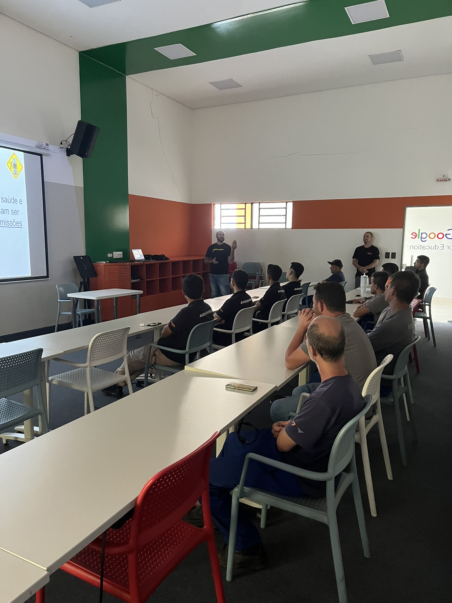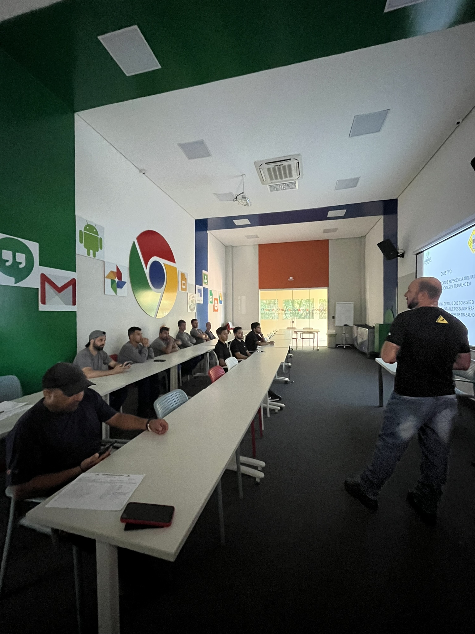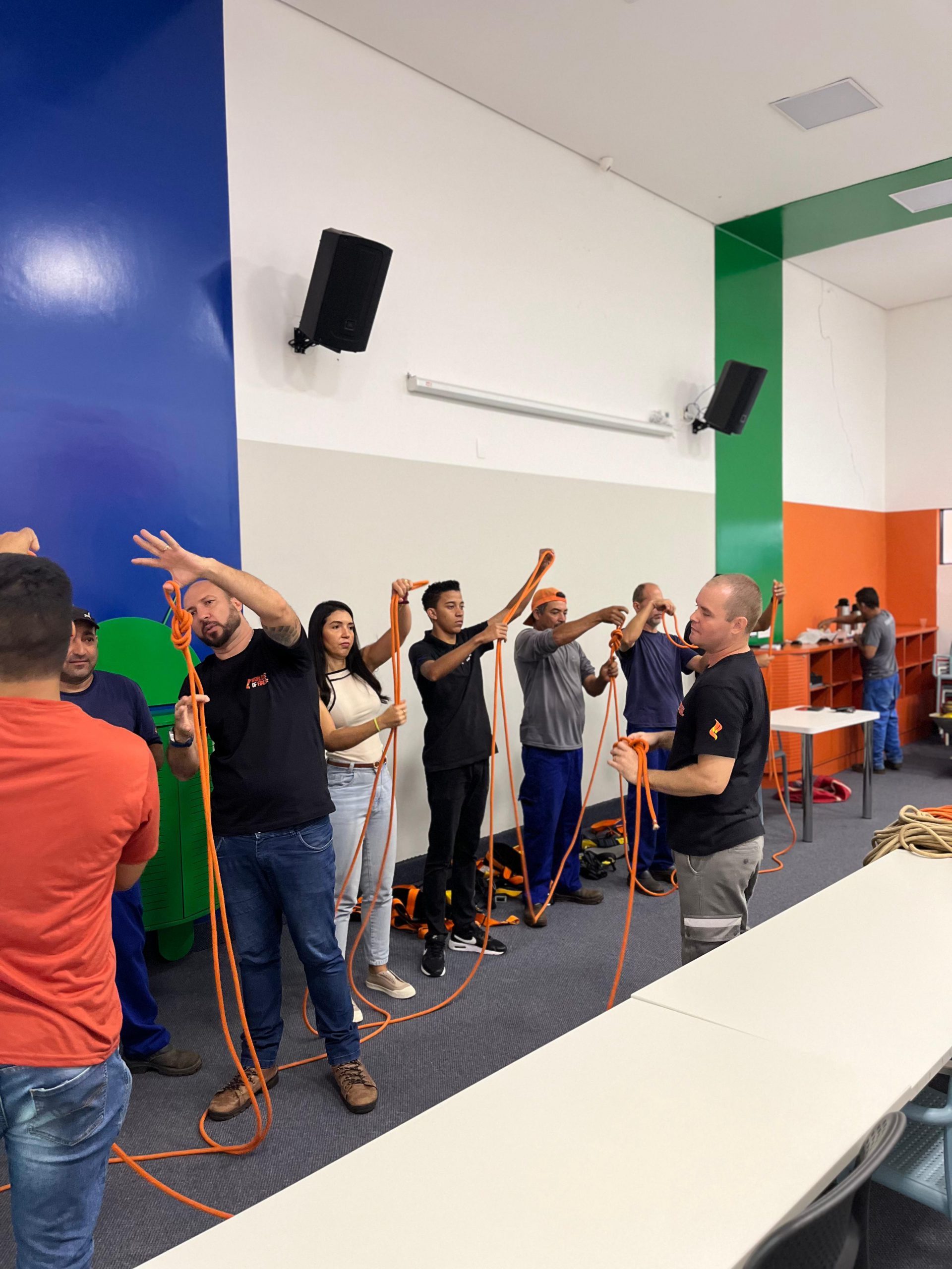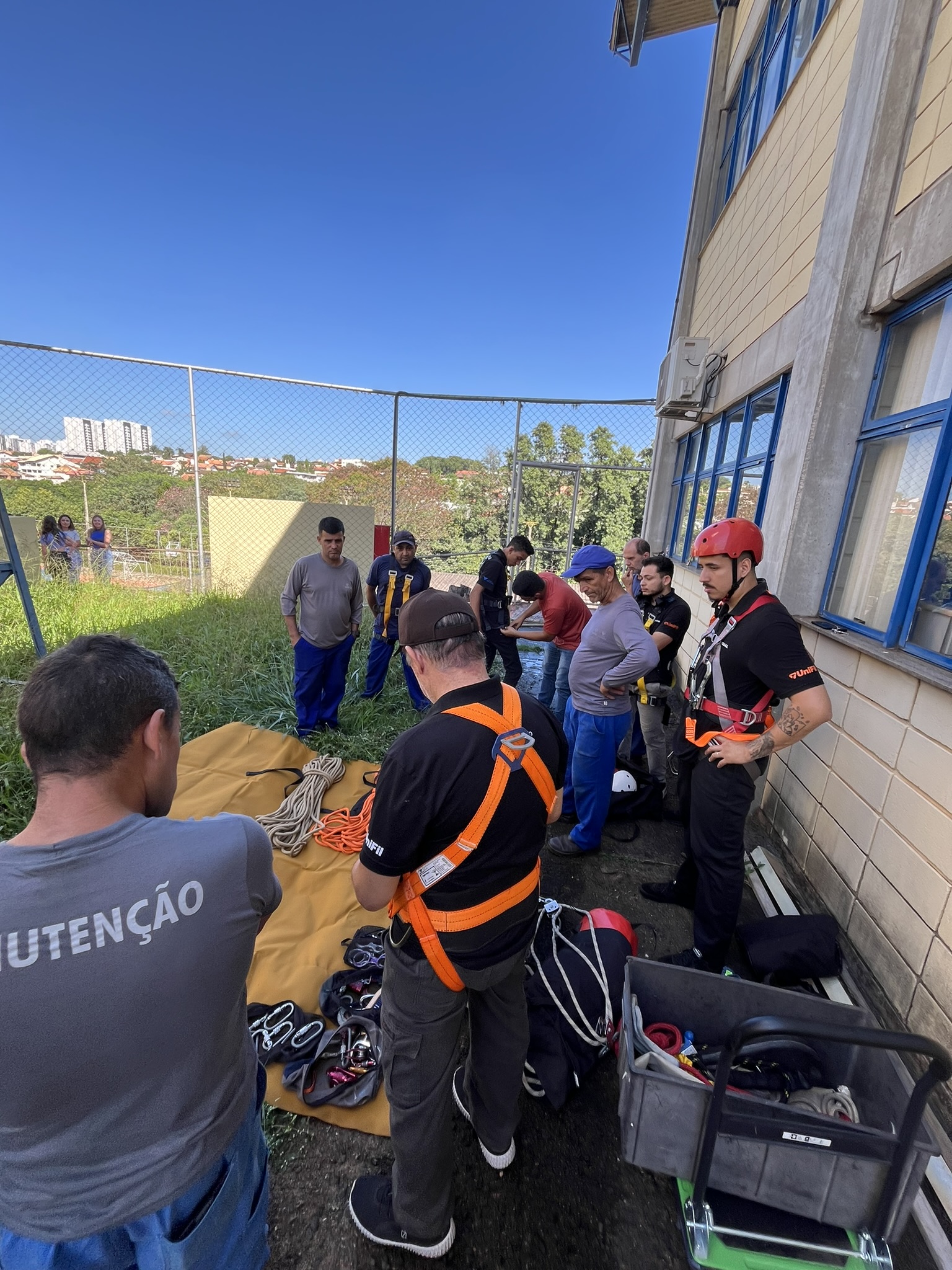 Esse treinamento teve como objetivo capacitar os funcionários da manutenção, audiovisual e zeladoria que realizam atividades acima de 2mts. No dia 02, foi feita a parte teórica e no dia 03, os funcionários aprenderam na prática como colocar corretamente o cinto, fazer nó de segurança e simularam uma descida de emergência pela caixa d’água da instituição.