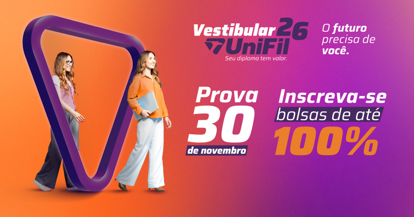 O resultado do vestibular será divulgado em 4 de dezembro e as matrículas começam no mesmo dia. Mais informações no portal www.unifil.br, pelo telefone/WhatsApp (43) 3375-7474 ou no Campus Sede – Avenida JK, 1626.