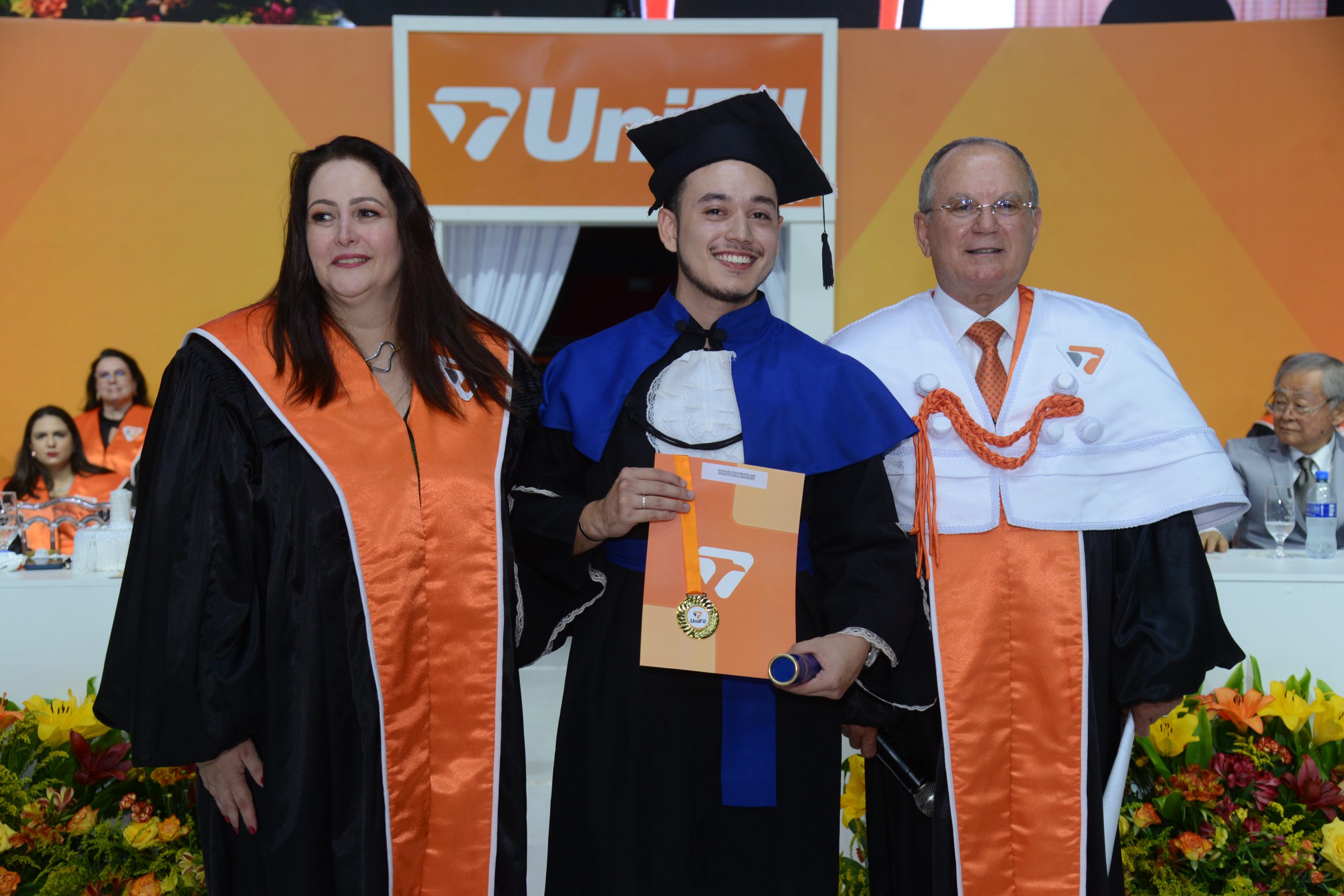 A UniFil reconhece o mérito dos melhores alunos e premia na cerimônia de colação de grau os primeiros colocados de cada curso. É uma tradição destacar os formandos que conquistam as maiores médias durante toda a graduação. O reitor Eleazar Ferreira, coordenadores e professores das graduações sentem-se honrados em apresentar os homenageados da Formatura 2024, que ganharam certificado, medalha de honra ao mérito e bolsa de estudo integral de pós-graduação na UniFil. Além, é claro, do prestígio e do carinho do público presente ao Moringão.