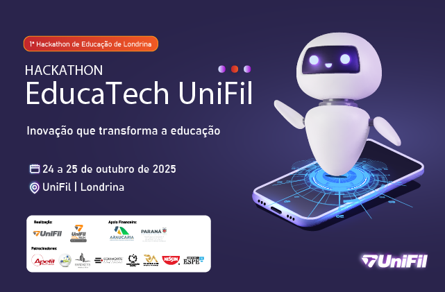 A UniFil realiza o Hackathon Educatech com a participação de estudantes e profissionais que vão desenvolver projetos inovadores para a educação, o primeiro da região de Londrina com enfoque nessa área. Talentos da UniFil, UEL, PUC, Unicesumar e Centro Estadual de Educação Profissional (CEEP) de Assaí disputam a maratona, formando 14 equipes no desafio de propor soluções criativas e aplicáveis no cenário educacional. As atividades começam nesta sexta-feira (dia 24), às 18 horas, e prosseguem no sábado no auditório do Campus Ipolon 2. A procura que esgotou as vagas para grupos concorrentes reforça o prestígio da UniFil e o envolvimento da comunidade acadêmica regional nas ações de tecnologia, inovação e empreendedorismo.